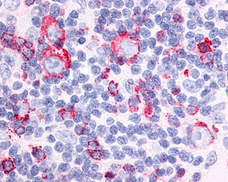 Anti-NPFFR1 / GPR147 antibody IHC of human Lymph Node, Hodgkins Lymphoma.