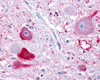 Anti-NPFF1 Receptor antibody AMM06781G IHC of human brain, neurons.