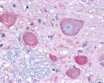 Anti-NPFF1 Receptor antibody AMM06780G IHC of human brain, neurons. |