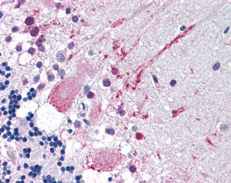 Anti-MRGPRF antibody AMM06475G IHC of human brain, cerebellum. |