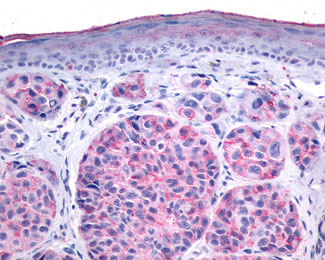 Anti-O3FAR1 / GPR120 antibody IHC of human Skin, Melanoma.