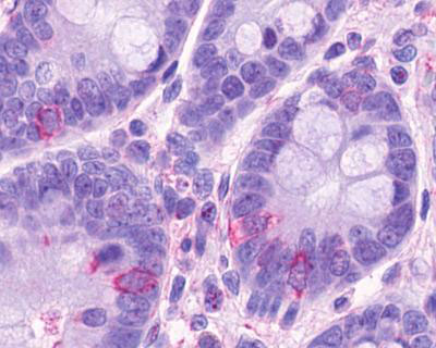 Anti-O3FAR1 / GPR120 antibody APR17636G IHC of human small intestine. |