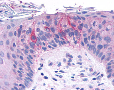 Anti-TAS1R2 antibody APR13689G IHC of human taste receptor cells. |