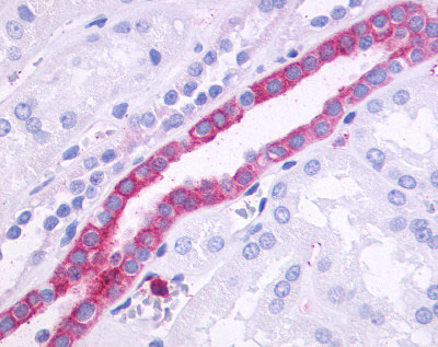 Anti-GPR110 antibody AMM05556G IHC of human kidney, renal tubules. |