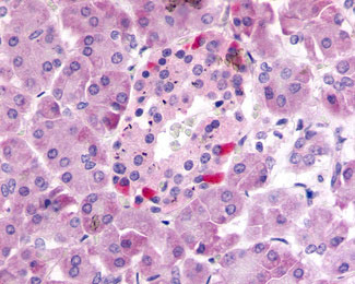 Anti-FKSG80 / GPR81 antibody IHC of human pancreas islet of Langerhans. |