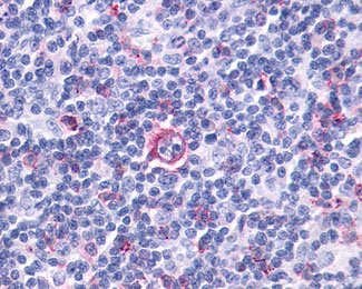 Anti-LTB4R2 / BLT2 antibody IHC of human Lymph Node, Hodgkins Lymphoma.