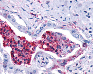Anti-LTB4R2 / BLT2 antibody IHC of human Pancreas, Carcinoma and Leukocytes.