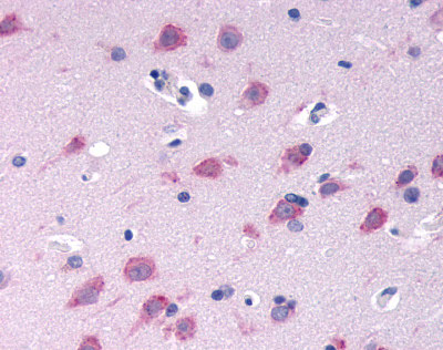 Anti-GPRC6A antibody APR12255G IHC of human brain, neurons and glia. |