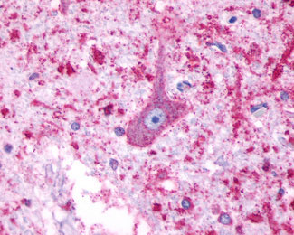 Anti-5HT4 Receptor antibody AMM06015G IHC of human brain, medulla.