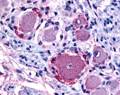 Anti-MRGPRX4 / MRGX4 antibody AMM06486G IHC of human spinal cord, dorsal root ganglion.