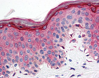 Anti-5HT1E Receptor antibody AMM06011G IHC of human skin.