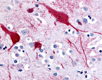 Anti-SLC5A9 antibody AMM07875G IHC of human brain, cortex. |