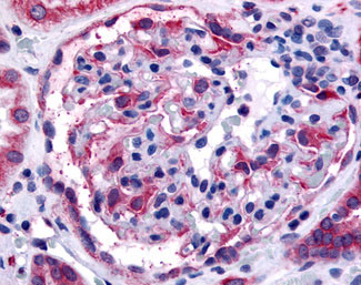 Anti-EPHA4 antibody APR11855G IHC of human glomerulus. |
