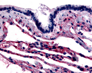 Anti-CAV1 / Caveolin antibody APG02441G IHC of human respiratory epithelium and alveoli. |
