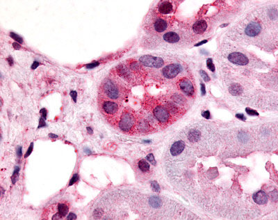 Anti-VN1R1 antibody APR13931G IHC of human kidney, renal tubules. |