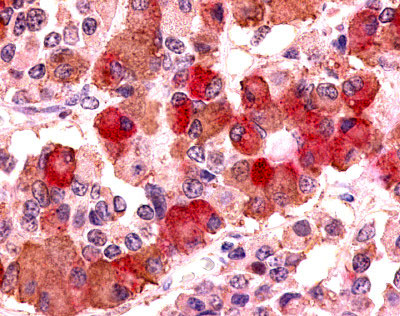 Anti-AVPR1B antibody APR11477G IHC of human pituitary, anterior. |