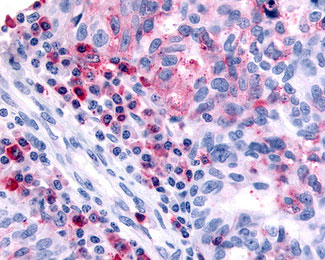Anti-HRH4 / Histamine H4 Receptor antibody IHC of human Ovary, Carcinoma and Inflammatory Cells. |