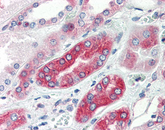 Anti-AVPR1A antibody APG03185G IHC of human kidney. |