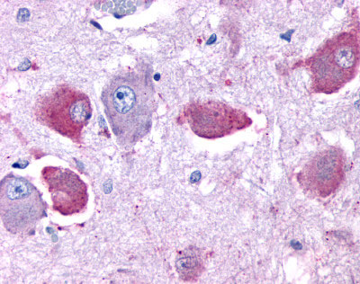 Anti-DRD4 / Dopamine Receptor D4 antibody APR11792G IHC of human brain, neurons and glia. |