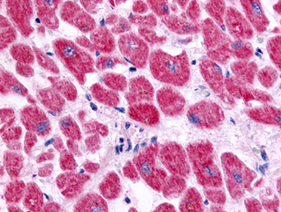 Anti-Endothelin A Receptor antibody APR07653G IHC of human heart, cardiac myocytes. |
