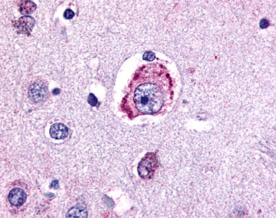 Anti-MC4 Receptor antibody APR08368G IHC of human brain, neurons and glia. |