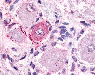Anti-MRGPRE antibody APR17471G IHC of human dorsal root ganglion. |