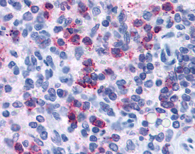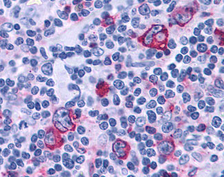 Anti-P2RY4 / P2Y4 antibody IHC of human Lymph Node, Hodgkins Lymphoma.
