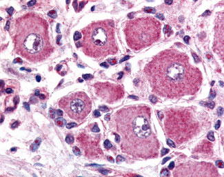 Anti-GPR149 antibody APR12207G IHC of human spinal cord, dorsal root ganglion. |