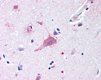 Anti-FZD9 / Frizzled 9 antibody APR11946G IHC of human brain, neurons and glia. |