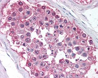 Anti-DAX1 antibody AMM06801G IHC of human testis. |