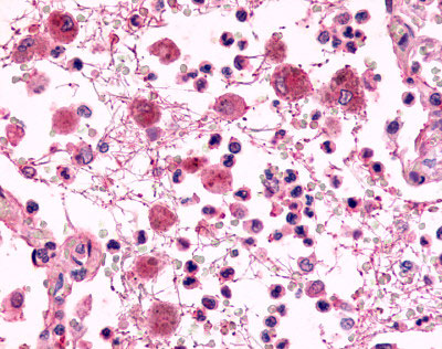Anti-EMR2 antibody APR14837G IHC of human lung, pneumonia, neutrophils.
