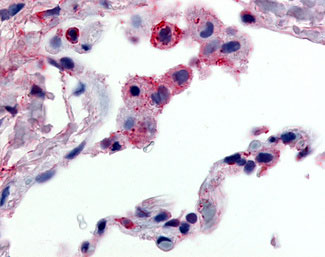 Anti-GPR43 antibody APR15954G IHC of human lung, alveolar macrophages. |