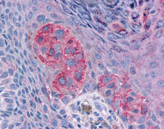 Anti-MRGPRX2 / MRGX2 antibody IHC of human Skin, Melanoma.