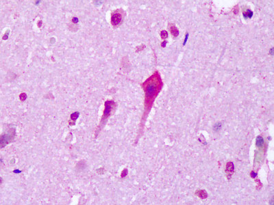 Anti-HT7 / 5-HT7 antibody IHC of human brain, cortex, neurons. |