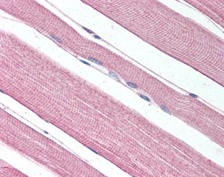 Anti-PROKR1 antibody APR12976G IHC of human skeletal muscle. |