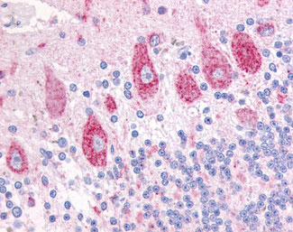 Anti-DUSP23 antibody AMM06970G IHC of human brain, cerebellum. |