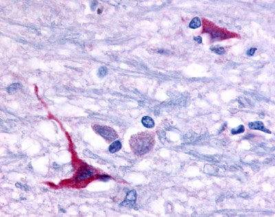 Anti-GPR101 antibody APR16466G IHC of human brain, hypothalamus. |