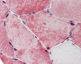 Anti-TXLNB antibody APR13886G IHC of human skeletal muscle. |