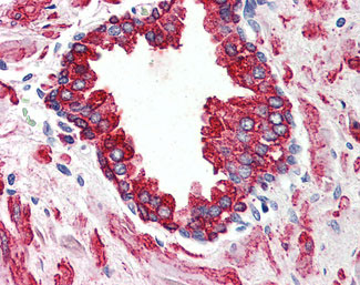 Anti-WNT5B antibody AMM08795G IHC of human prostate. |