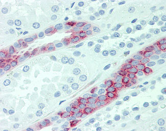 Anti-SLC4A2 antibody APR10116G IHC of human kidney. |