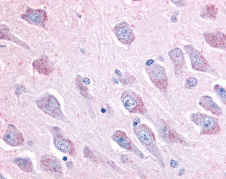 Anti-LINGO1 antibody AMM06307G IHC of human brain, hippocampus. |