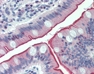 Anti-CDHR5 / MUPCDH antibody APR15385G IHC of human small intestine. |