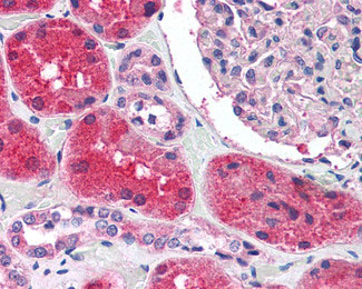 Anti-KCNN2 antibody AMM06143G IHC of human kidney. |