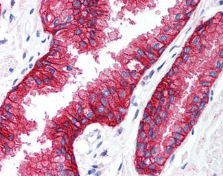 Anti-KCNN4 antibody AMM06149G IHC of human prostate. |