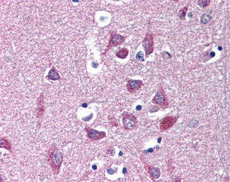 Anti-KCNA3 / Kv1.3 antibody APR16972G IHC of human brain, cortex. |