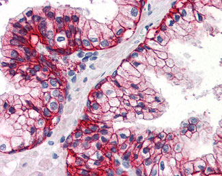 Anti-SLC1A5 antibody APR10001G IHC of human prostate. |