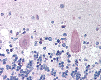 Anti-HTT / Huntingtin antibody IHC of human brain cerebellum. |