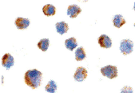 Immunocytochemistry of NGFR in A20 cells with NGFR antibody at 10 ug/ml.