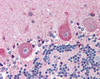 Anti-NGFR antibody IHC of human brain, cerebellum. |
