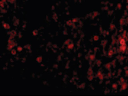 Immunofluorescence of PKR in Rat Lung cells with PKR antibody at 20 ug/ml.